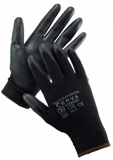 BUNTING BLACK EVOLUTION - rukavice PU - XL Pletené bezešvé polyesterové, rukavice s tenkou vrstvou polyuretanu v dlani a na prstech a pružnou manžetou.