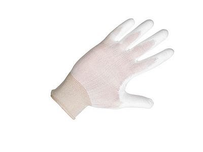 - rukavice pletené nylonové bezešvé s tenkou vrstvou polyuretanu v dlani a na prstech a pružnou manžetou velikost 8
