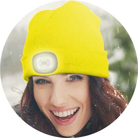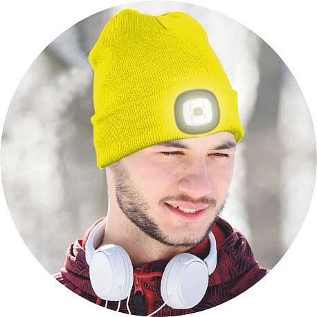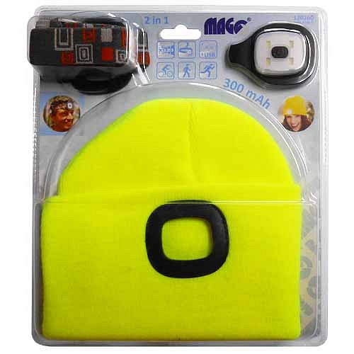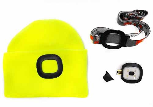 čepice s LED světlem, nabíjení přes USB, kapacita baterie 300mAh, 3 stupně svítivosti LED diody