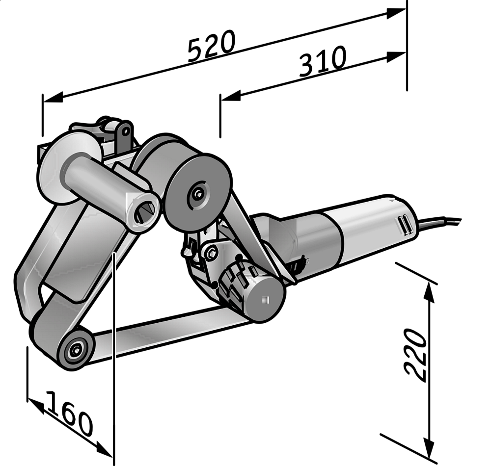 - Kvalitní brusné rameno: z lehkého kovu se 2 vodícími kladkami. Pro optimální obepnutí trubek do max. 270°
