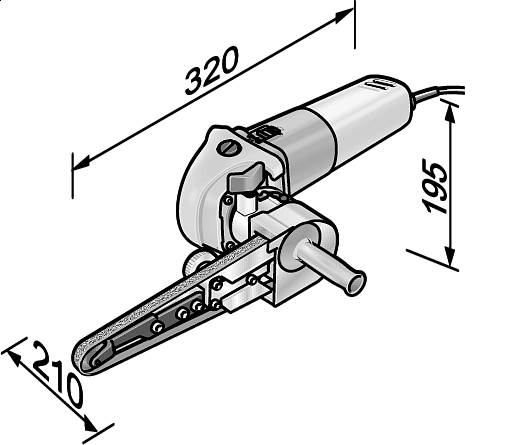 - Brusné rameno nastavitelné pro délku pásu 520 mm a 533 mm